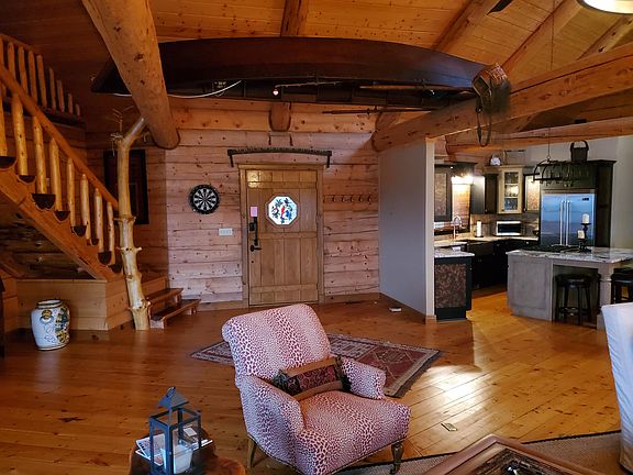 TRUE LOG HOME WITH SPECTACULAR VIEWS OF THE LAKE! This beautiful home is a must see to appreciate the craftsmanship and detail! The open and spacious great room has a stone fireplace with gas logs, large dining area and a gorgeous kitchen. The kitchen has granite countertops ,copper sink and copper accents in the backsplash and cabinets. There are spectacular views from almost every room including the sunroom and deck. The upstairs loft bedroom has it's own bathroom. The master suite has it's own deck overlooking the lake and a spacious bathroom with walk-in shower, and large walk-in closet. There are two offices on the main floor. The basement includes a bedroom , full bath, mechanical room and storage room. Some furniture included. 10x 30 boat slip with lift for extra $ nearby.