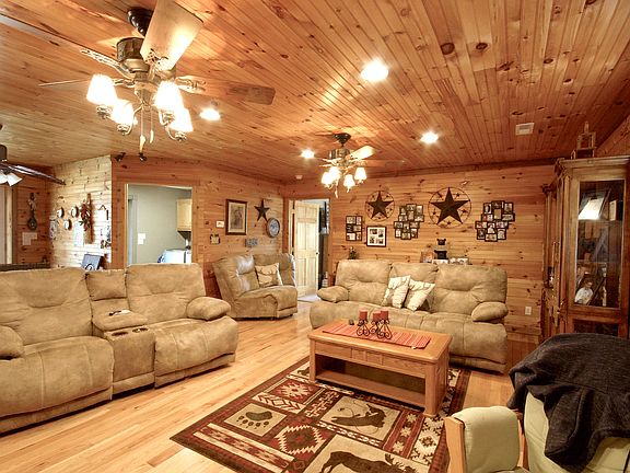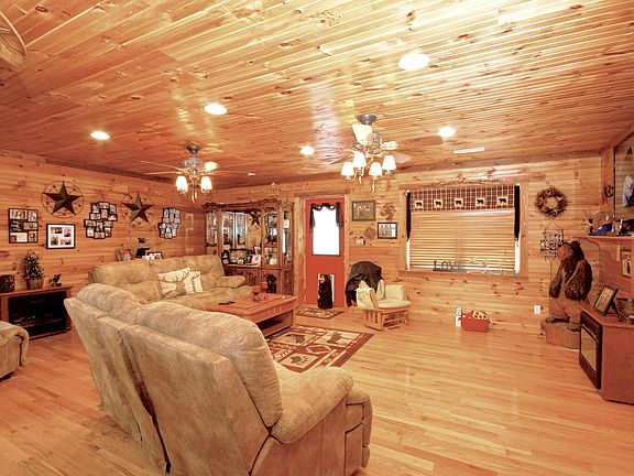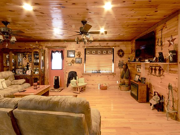 This Beautiful 1612 sqft, 3 bed, 2 baths is nestled on a mostly wooded 21 acres. The home is built with 6'' concrete walls with an additional 3'' foam insulation on both sides for lower utility bills and ease of mind in case of bad weather. The dining, kitchen and living room consists of hardwood flooring with wood sided walls and ceiling giving it that cabin feel. The bedrooms are very spacious allowing for King sized beds. There is a 40'x80' garage with 3 bay doors, concrete floor and a full bathroom. There is also a small 20'x20' Studio type building with a bathroom. There are 3 RV hookups with 2 having septic access besides the garage and building. All Stainless Kenmore kitchen appliances stay as well.