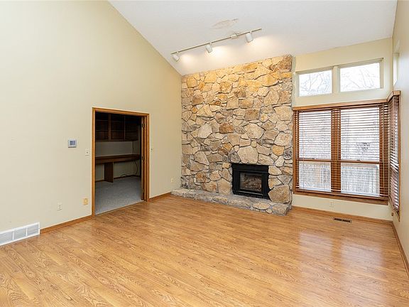 Spacious 2 story end unit townhome with walk-out basement. The enclosed sun room leads out to the newer deck that overlooks the tree-lined back yard. Vaulted ceilings in the great room with floor to ceiling stone fireplace. Office/den on the main floor has built-in bookshelves. The main level also includes a half bathroom. Head upstairs to find a loft area that overlooks the great room that could easily double as an extra living space or office, spacious primary bedroom with double closets, and en-suite bathroom. There is a second full bathroom and bedroom. Newer A/C, furnace, and water heater. Townhome needs some TLC but is priced to sell! The townhome is scheduled per HOA to have new siding and roof put on starting this spring. Summer is coming, enjoy the townhome community pool! Easy access to walking and bike trails. All information obtained from seller and public records.