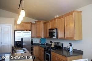 Beautiful Townhome located in midtown close to UAA, hospitals and bases. Home features kitchen w/stainless steel appliances, solid surface counter tops, and breakfast bar, living room with gas fireplace, vaulted ceiling, master bedroom suite with his and her closets, private bath with double vanity, jetted tub and separate shower. new flooring and new carpeting makes this home a must see.