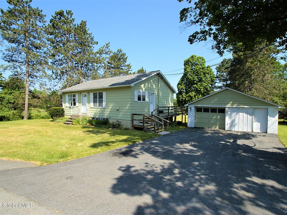 Cozy two-bedroom home in excellent condition on nice country lot with big back yard! L shaped kitchen with dining sitting area with big window view, good size living room, two bedrooms and one with hardwood flooring (second bedroom used as laundry now), full bath, full basement, electric b/b heat zoned, town water, detached garage with office that needs structural work including new concreate floor.