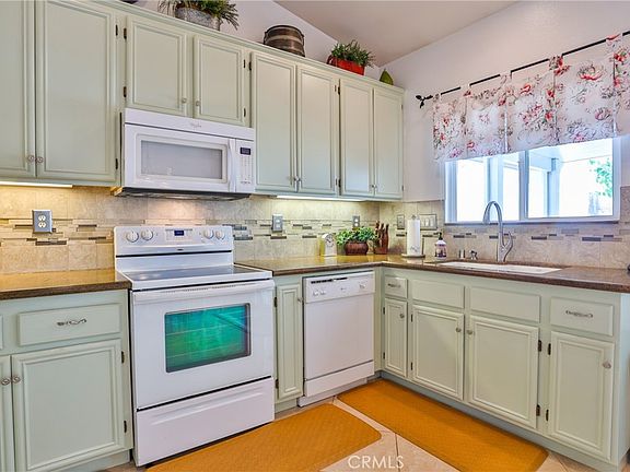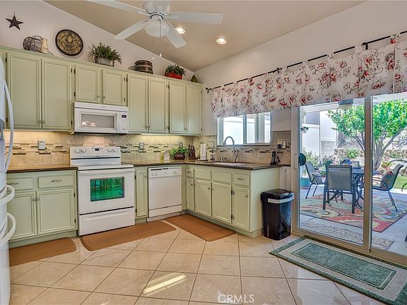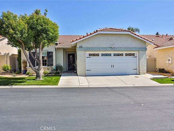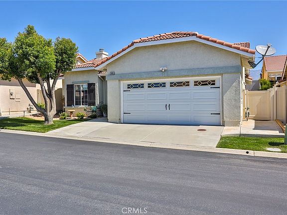 Finally! A charming and meticulously maintained, move-in ready home at an affordable price with low HOA fees and low taxes!! Located in the gated Serrano del Vista 55+ community, this 3 bedroom 2 bath home and community has all you need. An updated kitchen with porcelain floors, granite counters, slide out shelves, tiled back splash and newer bright white appliances. The refrigerator has an ice dispenser. (The stove is electric but it can be swapped for a gas stove, as it has the gas valve available). Off the kitchen is a dining area that opens up into the living room with a fireplace. The porcelain tile runs from the front entrance into the kitchen and matching tile continues down the hallway. The living room and two of the three bedrooms have carpet. The third bedroom, currently used as an office, has tile. The main bedroom has a slider out into the backyard and the main bathroom has a spacious double vanity. Each room has its own ceiling fan, to include the kitchen. There is an inside laundry (washer/dryer included!) that leads out to the automatic two-car garage with shelving for storage. Outside, the landscaping is a perfect mix of grass and low maintenance plants. All the watering is done through a hassle-free automatic sprinkler and drip system. The exterior of the house was freshly painted six years ago. The patio is shaded by an alumawood awning with retractable screen. The community has low HOA dues, which includes pool and spa (currently being renovated so will be brand new!), tennis/pickleball/shuffleboard courts, clubhouse, library, craft room, card room and mini-gym. This home has quick access to the 10 fwy, a short distance to the Cabazon outlets and Morongo Casino and not much further to Palm Springs!