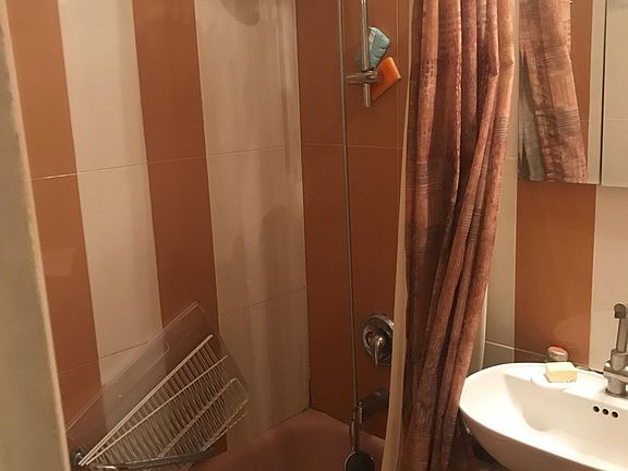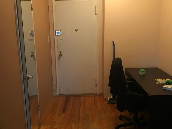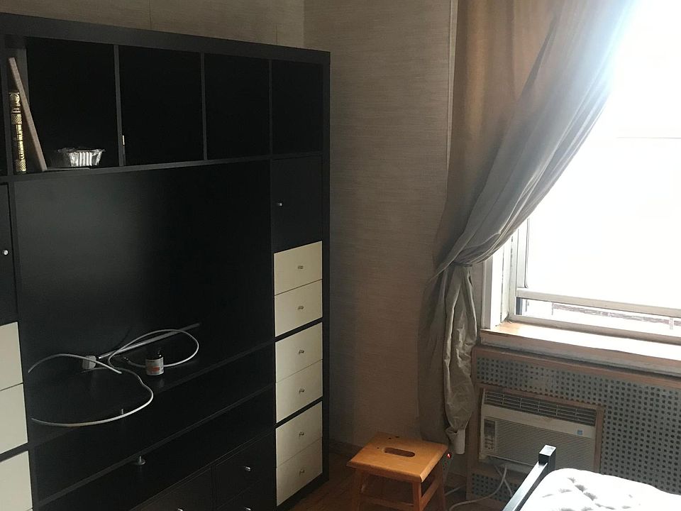 Large studio apartment on the 5 floor of elevated building. Hardwood floors, a lot of closets, eat-in kitchen with the window, fully tiled bathroom, separate sleeping and living room area. Building has laundry facilities on the ground floor. All utilities are included in the rent except electricity