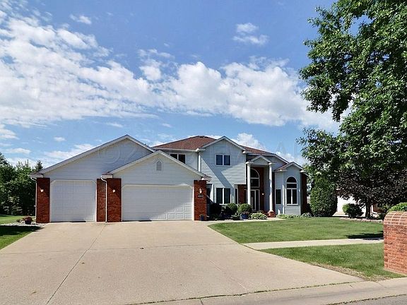 Wonderful Meadow Creek 2 story on a Perfect lot! Great location w/no backyard neighbors, mature trees & landscaping provide a private setting. Many updates make this an easy home to own. Newer siding, roof, gutters, hardwood flooring, carpet, front door, furnace and central air. Great floor plan w/Large 2 story foyer, open staircase, Formal living & Dining room with built in hutch, main floor Den/bedroom, spacious open kitchen w/island and granite counters, Informal dining, 4 season sun room w/large picture window overlooking the backyard, 3/4 bath, family room w/gas fireplace , mud/laundry room and a 5+ car garage! Upstairs features a large Master bedroom w/great view of the backyard,huge walk in closet and private bath, 2 Childrens bedrooms & full bath room. Lower level w/ bedroom, bath,