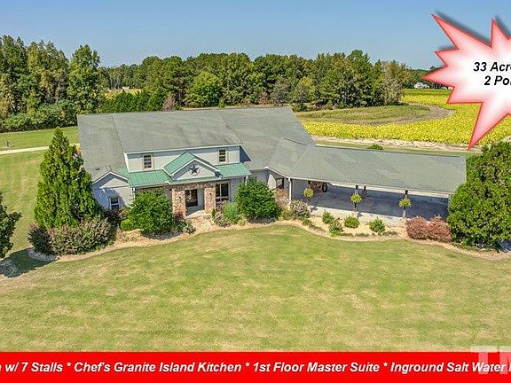 WHAT A LIFE! Horse Lovers DREAM! Dynamite Property Inside & Out! Gated Entry* Unbelievable 33 Acres with 4545 SF LUXURY Home w/ 4BR/3.5Ba* Plus HUGE Finished Bonus Rm & Walk In Attic* Chef's Kitchen w/ Gas Cooktop & Wall Oven Concrete &Wood Floors* LUSH 1st Flr Master Suite* ALL SPA BATHS* Family Rm/ w Fireplace* Enjoy Outside Living in your In Ground Salt Water Pool or Barn w/ 7 Stalls +Tack Rm & Wash Pit* 2 Great Fenced Pastures* Dirt Track for Training* 2 Ponds* Convenient to I 95 & Hwy 70