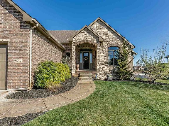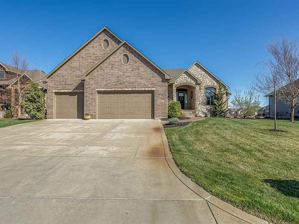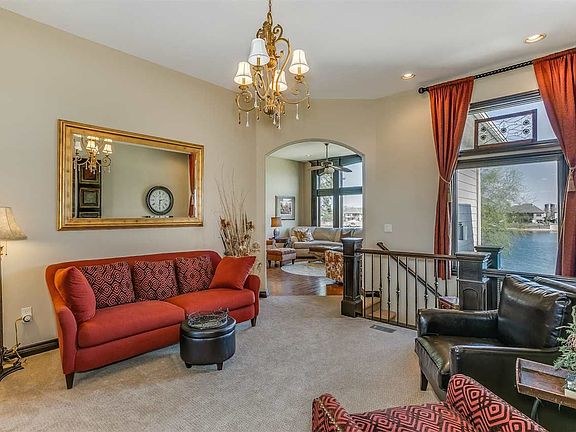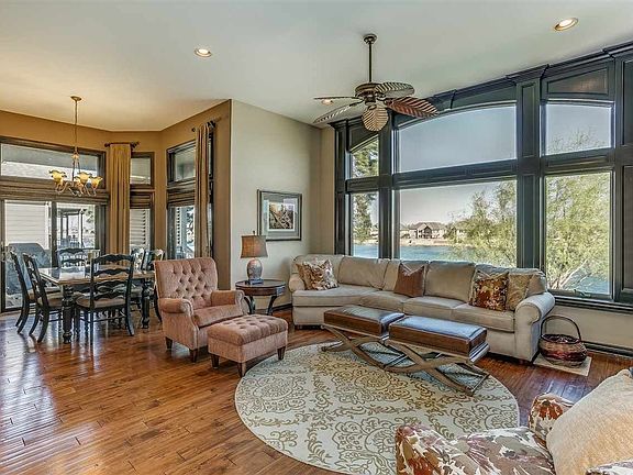 West Wichita Lake Home Now For Sale! Vacation At Home! This stunning Emerald Bay ranch home was a former model. Features 5 bedrooms, 3 bathrooms and a spacious 3 car garage. Located on the LOW WAKE side of the lake, this lot will be highly sought after. The established backyard trees provide shade, privacy and a nice wind break while still offering a Gorgeous Wide Open Lake View! Amazing home throughout and PRICED TO SELL!!!! Loaded with quality finishes and a floor plan to fit all lifestyles. Abundance of natural light and windows galore! Home has brand new stylish neutral sculpted carpeting throughout. Other amenities include attractive wall colors, high quality wood work, gorgeous hand scraped wood floors, granite countertops, upgraded trim and tall ceilings. The main floor kitchen, hearth, & dining room area is ideal for daily living and so spacious! Beautiful hearth, roomy eating area, staggered kitchen cabinets, walk-in pantry, quality stainless steel appliances including a built-in double oven, striking vent hood above gas stove, under and over cabinet lighting, eating bar, nice tile backsplash and can lighting. Too many features to list. Fun home to live and entertain in! The Master Suite floor plan is the best! Laundry room leads to oversized walk-in master closet with upper off-season racks and center island sweater shelves. The closet then conveniently leads to the master bath which flows into the master bedroom. Very well thought out plan! Master bath includes tall double vanity, nice accent mirrors, linen closets, private toilet, granite, tower cabinets, corner jetted tub and walk-in shower. The master bedroom is adorned with crown molding, four square transom windows and a beautifully backlit master bedroom ceiling. Walk out to the deck to enjoy your morning coffee and breathtaking lake views. In fact, the entire back side of the home has amazing lake views. The backyard space is massive and over 60 feet deep, perfect for a pool plus yard is already wired for an invisible dog fence. You'll love the newer stamped concrete patios and walkway leading to the beach. The entertainment possibilities are unlimited with several areas to choose from: upper covered deck, lower patios, covered and uncovered, another patio section perfectly nestled in a recessed area (great wind shelter) and cozy fire pit. Beach is in excellent condition and ready to enjoy. Don't miss the fabulous basement with 9 foot ceilings, huge family room, recreation area, game/billiard room, wine room with hidden door, fireplace, awesome wet bar and true walk-out to patio, lawn, & beach. Sellers have thoroughly loved living here and you will too! Residents at Emerald Bay Estates enjoy so many amenities! 66 acre lake allowing boating, skiing, fishing plus a neighborhood pool and clubhouse. Close to highway access, shopping and dining. Call today to schedule your showing before it's too late!