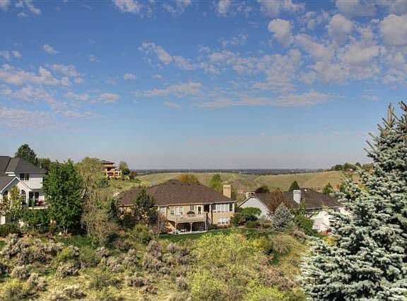 et on Somerset Ridge in a cul-de-sac of Ridge One, this beautifully appointed home backs to open space and enjoys Hulls Gulch and foothill views, while offering immediate access to trails! Professionally landscaped and maintained grounds with a herringbone patterned brick entry path lead to the entrance. Inviting hardwood foyer opens up to a great room design with a full wall of view windows to take in the spectacular outdoor setting. Impeccably upgraded gourmet kitchen is open to the great room, and features Viking appliances -- double ovens, cooktop, and built-in refrigerator. Natural woods and custom paint finishes adorn the cabinetry and blend with the outdoor surroundings. The great room extends to the outdoors on an expansive deck with a built-in banquette to dine and take-in the views. Main level master suite features a fireplace & a luxurious bath suite with elegant spa-style finishes. Main level also provides a guest room with full bath and an office set apart with glass French doors. Lower level features immediate access to the yard through a spacious family room/media room with generous built-ins. A second master suite is located in the lower level with a luxurious bath suite, followed by two additional bedrooms, a weight room, a craft room and a wine collectors cellar! Unbeatable upgrades, fine finishes and location! Buyer to verify all.
