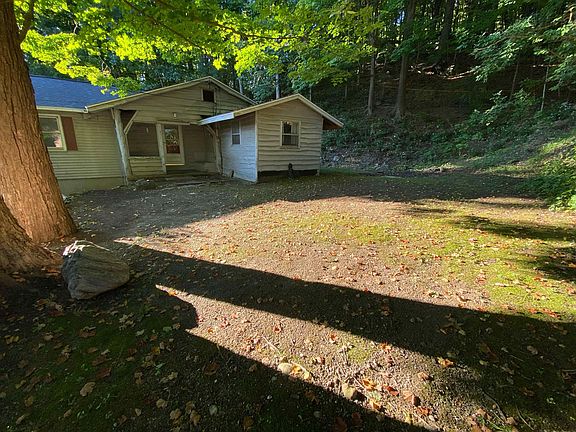 Ranch style home with walk out basement has room for spreading out! Main level includes mud room entry, eat-in kitchen, living room with exposed beams and hearth with wood stove, four bedrooms and the full bath. Lower level laundry area and family room. Detached two-car garage. The 0.80 acre lot has a level area for play or garden space.