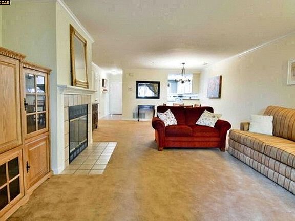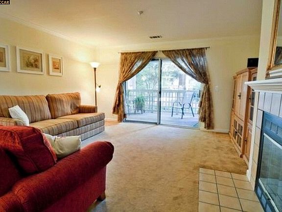 This Condo features two bedrooms, two bathrooms, remodeled kitchen with beautiful granite, cream cabinets, tile backsplash, stackable washer/dryer. Spacious floor plan offers a dining room, living room with a wood burning fireplace, a master suite with ample closet space. Close to freeways & BART!