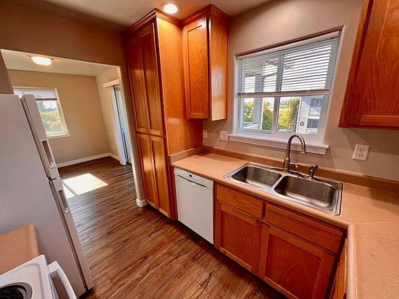 East Medford home for Rent Upstairs Unit #4 Excellent location in East Medford 2 bedrooms, 2 full bathrooms, open kitchen/living area. The unit has a patio with a storage closet. The home has dedicated parking. Recent updates include a new Hvac system. Newer Laminate floors throughout. Located in the Kennedy Elementary, Hedrick Middle and North Medford High School districts. The home comes with a refrigerator and a brand-new washer and dryer. Central heat and air conditioning. Owner pays: water, sewer, and trash. Tenant to pay power. No Smoking 1 Pet allowed under 40 pounds with a $600 pet deposit Rent: $1,395 Deposit:$1,900 Pet deposit $600 Available November 6.4.25