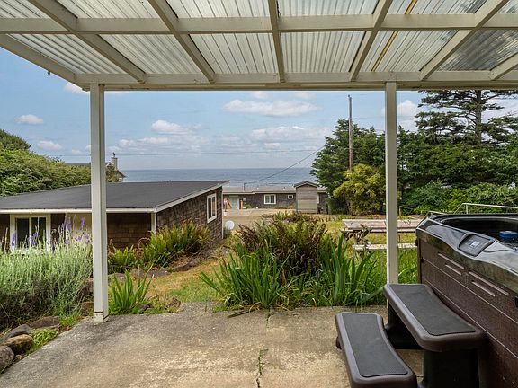 ACROSS STREET FROM OCEANFRONT! Just yards to beach access. Transferrable short term rental license. Coveted enclave of oceanview homes on short private road overlooking Short Beach. Quiet, picturesque with views of lighthouse, waterfalls, and North side of Three Arch Rocks. Ask about the hidden natural cave and tidepools filled with seastars and anemones. One level, abundant parking. Even the garage has an ocean view. Updated interiors, new bank of windows and a newer hot tub. Note that half bath has room to add a shower to create 2 full baths.