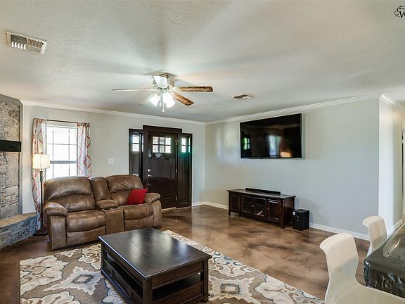Country Living but close to town... Nice 3 bedroom 2 bath home with 2 acres just outside of Wichita Falls. Open kitchen, breakfast and living area. Newer bathrooms with tub/shower combo. Big mud room/laundry room with pocket door to kitchen.