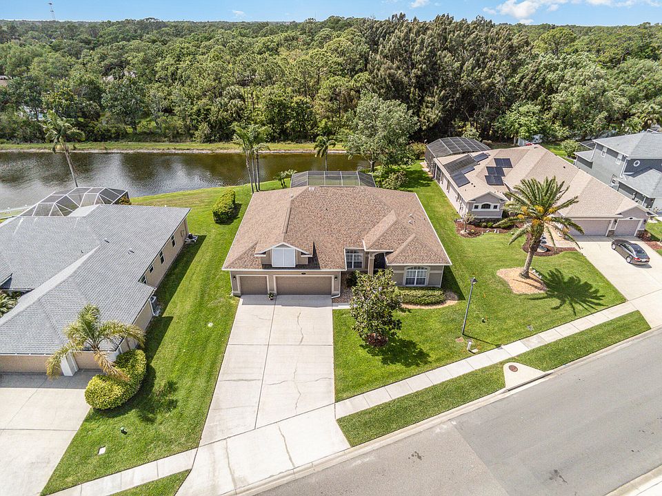 This stunning Lakefront, POOL & SPA home in the highly sought-after gated neighborhood in W Melbourne, Hammock Lakes. It boasts numerous desirable features. From the moment you arrive, you're greeted by the charm of Bahama shutter over bonus room, a 3-car garage, & a brand-new roof. Upon entering, the home exudes elegance with its formal dining & living rooms, perfect for hosting guests or enjoying intimate family dinners. The layout seamlessly transitions into an open family room and a breathtaking new quartz kitchen equipped with top-of-the-line stainless steel appliances. Step outside to take in the picturesque views of the lake and pool area, complete with a heated spa and an underground propane tank ensuring comfort and convenience year-round. The primary bedroom is a sanctuary unto itself, featuring a sliding door leading to the outdoors. Inside, brand new carpeting, and a remodeled en-suite bathroom, providing the ultimate relaxation and luxury. This home offers the perfect blend for Florida living