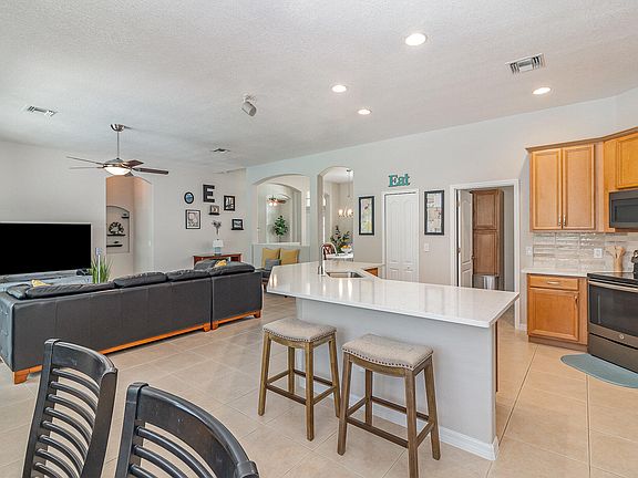 - Ceiling Fan(s), Eat-in Kitchen, Entrance Foyer, Kitchen Island, Open Floorplan, Primary Bathroom - Shower No Tub, Primary Downstairs, Split Bedrooms, Walk-In Closet(s)