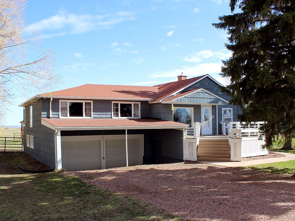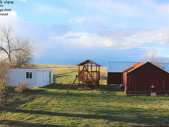 This clean and comfortable family home has 1600 finished square feet, an attached double car garage, beautiful deck built with Trex decking with built-in bench seating, and huge below level storage capacity. Throughout the upper level, there is gorgeous knotty pine with complementary patina. Many improvements throughout the home include updated ceilings, lighting, walls and updated bathroom. There are many new windows and a brand-new high efficiency Carrier furnace. Property features: Less than one mile from city limit * 5 acres * NO COVENANTS * 2 wells * irrigation rights through Alliance Lateral Ditch Company * UNOBSTRUCTED PANORAMIC MOUNTAIN VIEW * 2 barns with electricity * large storage building * garden shed with electricity * corrals * play house * many apple trees, and many mature trees * huge raspberry patch * concord grapes * fully fenced for pups or horses (or both!) * peace and quiet featuring a few non-nosy neighbors.
