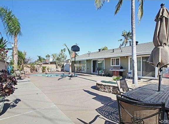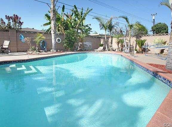 This charming ranch house has been lovingly maintained and shows pride of ownership. Traditional, single level floor plan in a wonderful West Anaheim neighborhood. The front entrance leads to a spacious living and dining room. The kitchen features granite counters, tile flooring, and stainless steel appliances. The master bedroom and bathroom are privately located on a separate side of the home with the other two spacious bedrooms and full bathroom located on the opposite side. Step into a large, low maintenance back yard that boasts your own sparkling pool. The two car, attached garage has been recently dry-walled and painted. A great interior location adds to all of the other bonuses this home offers. Conveniently close to shopping, schools, and entertainment.