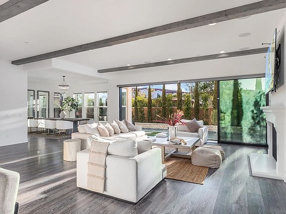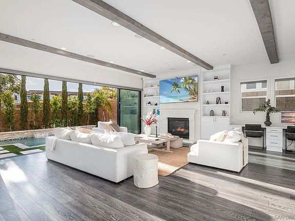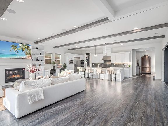 Meticulously maintained approximately 4,000 sq. ft. two-story POOL home with an attached two-car garage located within the highly desirable community of Robertson Ranch in East Carlsbad. Built in 2017, by the Toll Brothers this amazing Smart Home is an Entertainer’s dream featuring owned solar, designer paint, a cozy fireplace, and durable flooring throughout. An open floorplan with large windows basks the home in an abundance of natural light. A beautifully appointed kitchen boasting quartz countertops with a custom tile backsplash, stainless steel appliances, recessed lighting and pendant lighting, walk-in pantry, and crisp white cabinetry with an island with breakfast counter seating that opens to the living area. There is a bedroom and bathroom on the main level. The remaining bedrooms and the loft are upstairs including the spacious primary suite with a large walk-in with California Closet custom built-ins, and its own spa-like en-suite bathroom offering dual vanities, a relaxing soaking tub, and walk-in shower. Outdoor living extends to a private yard with thoughtfully designed hardscape including a sparking pool and spa, water feature, covered patio, artificial turf, and low-maintenance landscaping, making it perfect for entertaining. Additional upgrades include built-in Christmas lights, custom built-ins, epoxied garage floors, surround sound, and an EV charger. Unsurpassed community amenities include a resort style pool, spa, clubhouse, BBQ’s, and recreational trails. Highly-rated Carlsbad school district.