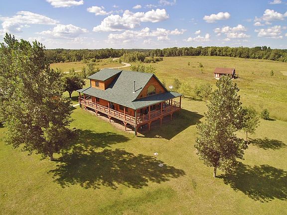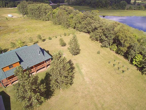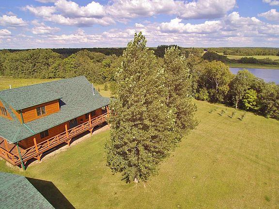 Settled on 2.61 acres with 256.32ff on Rice Lake,is this well constructed log home. Beautifully done it contains 3bdrms & 3baths. Open concept on main level for entertaining & relaxation. Upper level creates a Loft area for sitting and a Master bedroom suite. This property has room to grow with an unfinished basement currently having stud walls set up for 3 addtl bedrooms. Remove the stud walls to create your own space. House is surrounded by wrap around deck. Det. 28x40 is insulated,heated,with water & floor drain. Enjoy the hot tub,set up for entertainment & surrounded by cedar tongue and groove. Extra rv electrical hookup for guests. Rice Lake is private with NO PUBLIC ACCESS 177acres 23ft max depth and holds Bluegills,Lg Mth Bass,Nrthrn Pike& Walleye. Turn key option available!