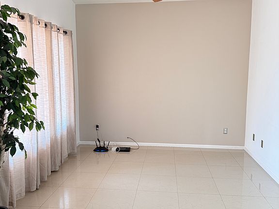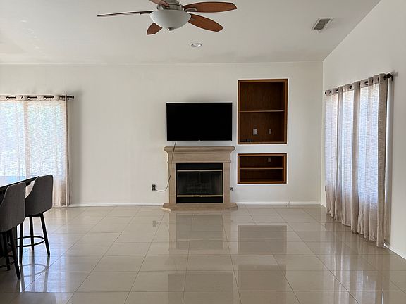 This home, perfect for families with children and pets, is in the Verano HOA community. It's one block from Rio Vista Elementary school and on a quiet, charming tree-lined street and only 10 minutes from downtown Palm Springs. The Verano community offers desirable amenities including a clubhouse, community pool and spa, and workout room, pickle ball courts, a large grass park, small dog areas, and a large playground. The 1723 square foot, 3 bedrooms 2 bath home has an open floorplan with large, private, grass back yard and patio. It's One of the largest lots in the Verano community. A gardener will be provided. All pets are welcome. Home is rented unfurnished, except for three counter stools Solar electricity is included Attached two-car garage has openers, keypad entry and storage LG washer and dryer Stainless kitchen appliances: refrigerator, microwave, dishwasher, gas range, electric oven Large kitchen counter with stools Spacious double door panty Beautiful custom walk-in closet with drawers and shelves Large ensuite primary bath with long counter, two sinks, tub and shower Second bathroom accessible from two bedrooms and has double sinks, tub/shower Tile floors in common areas with carpeted bedrooms Cozy fireplace Long-term renter with a minimum one year lease. Monthly rent includes back/front yard maintenance (landscaper), HOA fee for pool/gym/clubhouse, and solar (owners have never had electrical bill above what is covered by solar.) Renter pays gas and water.