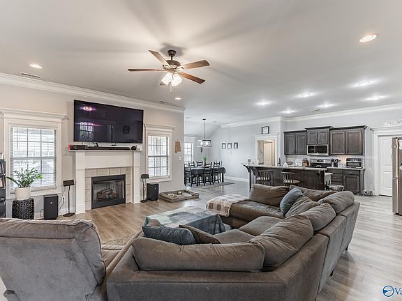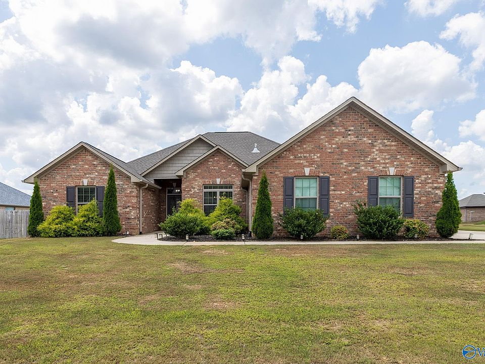 Stunning all-brick 4-bedroom, 3-bath home in Heritage Woods Subdivision! Featuring a spacious open floor plan with 10-foot ceilings, a gourmet kitchen with granite countertops, custom cabinetry, and a large walk-in pantry. The primary suite boasts a double trey ceiling, walk-in closet, and glamour bath. No carpet—Rev-Wood flooring throughout! Enjoy the bonus room, covered rear porch, privacy-fenced yard with an above-ground pool, and a 3-car side-entry garage with STORM SHELTER!! Conveniently located near Huntsville & I-65 for easy Nashville access. Schedule your tour today!