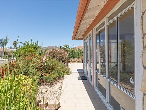 Back on the market at no fault of the seller with a stunning PRICE ENHANCEMENT!!! Welcome to this expansive 55+ community home in Menifee, offering a spacious layout and pristine, move-in-ready condition. This single-level residence boasts 2 bedrooms, 2 bathrooms, plus an office/den that could serve as a 3RD BEDROOM. It features a LOW LOW HOA, SUPER LOW TAXES, and includes PAID OFF SOLAR PANELS for enhanced energy efficiency and ZERO energy bills. Upon entry, you'll find an inviting atmosphere with an enclosed front porch area and plantation shutters throughout. The home is adorned with new carpet and newer vinyl windows, ensuring comfort and modern style. Enjoy the warmth of two fireplaces—one in the living room and another in the family room. The kitchen is generously sized with bar seating, flowing seamlessly into the family room, ideal for gatherings and entertaining. Formal living and dining areas provide additional space for hosting guests and family meals. Outside, the large backyard offers multiple fruit trees, a patio cover, and plenty of room for gardening and relaxation. An attached 2-car garage provides direct access to the home, adding convenience and security. Located near the 215 Freeway, this home provides easy access to shopping (Menifee shopping plaza), dining, and other amenities. Don't miss out on this opportunity to own a spacious and well-maintained home in a vibrant 55+ community in Menifee.