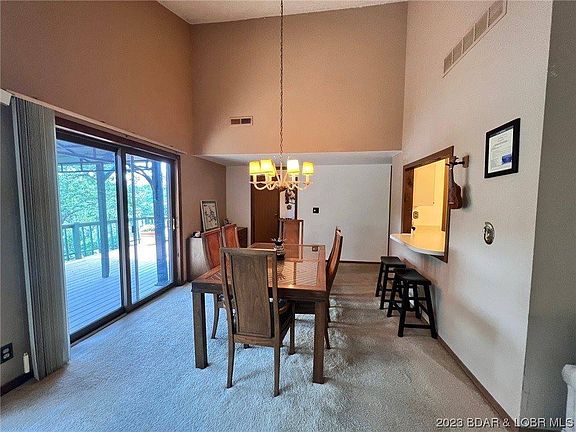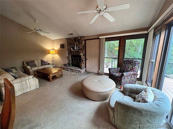 Prime Location off the Gravois Arm in Indian Creek Cove! This property has never been on the market before... so now is your chance! Located in a very nice community with Stunning Views, Deep Water, 160 ft of lakefront, Large 3 well dock with 16x40 Slip (and two 10x24 slips with 1 boat lift), Dock Storage Area & attached swim platform/Deck area...perfect! This is the place to hang out and enjoy the Lake! Home features 2000 +/- sq ft with Vaulted Ceilings, Cozy Fireplace, 4 bedrooms (4th bedroom is located over the garage with private entrance.), 2.5 baths, Master Suite has its own private deck, 2 car attached garage and large decks to enjoy the magnificent view!!! Located on an oversized lot with beautiful trees and nice concrete driveway. Home comes furnished .... so bring your swim suit and fishing pole and enjoy!