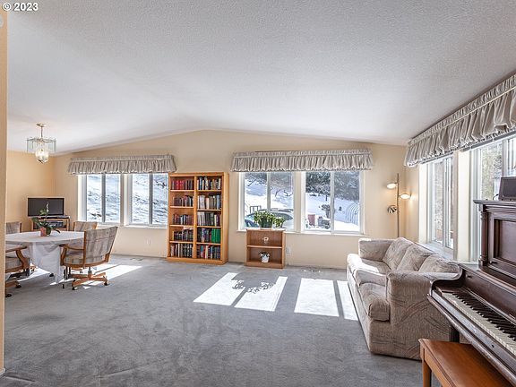 Escape to your very own 9-acre wooded paradise with serene views of hills, forest & wildlife. This open-concept home offers a large kitchen with an island, a unique bonus laundry/craft/office area, perfect for work & creativity. With vaulted ceilings, skylights & almost wall-to-wall windows, you'll enjoy breathtaking views of the valley, garden & orchard of 16 fruit trees. Zoned TBR and forest on back of property. This house has been well maintained, is move-in ready and offers an exceptional living experience.