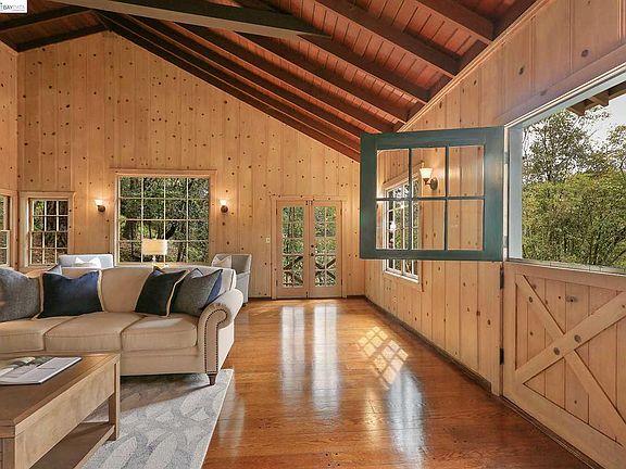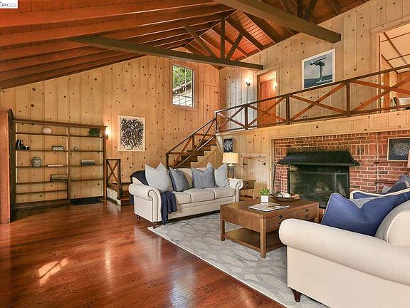 Handcrafted 1930's home featured on the cover of Sunset Magazine in 1941! Massive great room with fireplace, vaulted ceilings, oak floors and knotty pine walls. Eat-in kitchen with its own fireplace and separate formal dining room. Quiet location close to Montclair Village and transbay bus stop.