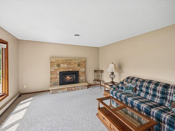 Escape from the hustle and bustle of everyday life with this charming rambler situated on a private 4.62-acre lot. As you make your way up the driveway you will be greeted by mature trees, abundant wildlife, and an expansive lawn, the perfect place to entertain friends and family. Head inside where you will find a spacious living room lined with large windows and a cozy gas fireplace to provide warmth in the cold winter months. The well-appointed kitchen features ample cabinet storage and additional countertop seating for casual dining. Three bedrooms are conveniently located on the main level and share a full bathroom with a dual vanity. Two flex rooms can be found on the lower level along with a ¾ bathroom, recreation area, and laundry facilities. With a convenient location, a 28x40 pole building to store your outside maintenance equipment, and a private, wooded setting, this home is a sweet retreat.
