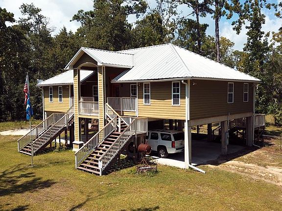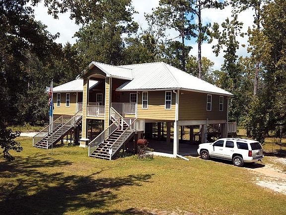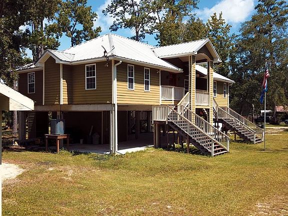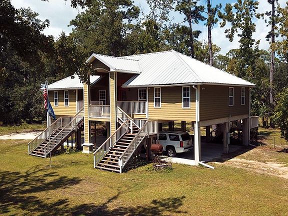 Beautiful home on 1.14 acre lot located in Big Oaks, a small, gated community on the Apalachicola River, minutes from downtown Apalachicola. Private boat ramp and dock for shared use of homeowners as well as individual dock on canal for homeowner's use. Located across road from Box R Wildlife Management Area. Deadhead cypress walls, mantelpiece, peninsula, molding, and baseboards custom made from logs pulled from Apalachicola River by well known contractor and sawmill owner, Eric Teat. Oak floors, designer style kitchen cabinets, granite counter tops, gas fireplace with floor to ceiling rock, and cedar closets in each bedroom. Huge storage room downstairs with built-in shelves, utility sink, toilet, and hot water heater. Fenced, 1/2 acre backyard. Hardie board siding and metal roof.