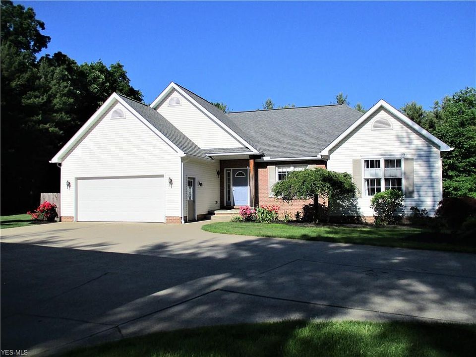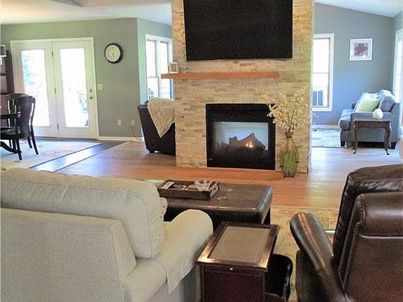 Helllooooooo Beautiful!! Tucked away on 5.6 acre wooded lot, this 3-bedroom, 2-full bath, 1-half bath ranch is stunning!! Comfortable yet elegant. Open living, eat-in kitchen, dining room. Master suite with double door entry, master bath with soaking tub, shower, large vanity and 11 x 7 walk in closet. These owners have revamped this newer home with engineered wood flooring, slate tile, most newer light fixtures and hardware, granite counters, sink and fixtures, two-sided propane fireplace with new stone front, custom blinds and finished basement with huge family room, game area, bar and half bath. 3rd bedroom would make a great office with double french doors and easy access. 2-car attached garage plus 2-car detached 32 x 40 carriage house with awesome 30 x 12 party room/cave includes another 5 x 6 half bath and small kitchen area and wood stove. Great place to clean your fish or game. Carriage house features 9' overhead doors and is extra deep for your truck, boat or SUV. Concrete drive and extra parking area for your boat or RV near the house and newer asphalt drive out to the paved road. Out back find a huge newer multi-level Trex deck, fire pit area and stocked pond with bass, bluegill, cat fish and amur plus a dock. Totally surrounded by woods and privacy. The seller is an amazing decorator and this home is a must see in person! Preapproved Buyers only please.