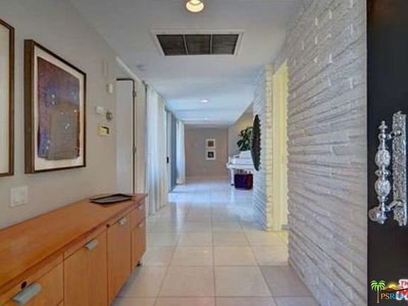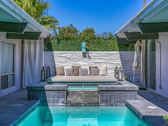 Architectural home inspired by John Elgin Woolf a Mid-century beauty with Hollywood Regency flair. Located in South Palm Springs, rarely available at Marabelle Estates. Features 3 bed 3 bath-floor to ceiling walls of glass, stunning panoramic mountain views, multiple outdoor living spaces, stone accent walls & fireplace, 10' high ceilings, sunken living room to capture picturesque mountain views on either side of the home, updated kitchen & baths, stone and tile floors, PRIVATE pool and spa. Over 2450 square feet of living space, 3 Master en-suites, living, dining, kitchen, office,and laundry room, double door entry and foyer. MaraBelle Estates is a lushly landscaped,low density community, offers resort style living: community tennis court/pools/spas, tucked away in wind-free South Palm Springs, minutes to Palm Springs International Airport, near shops, cafes, Koffi & Jensens, hiking and biking trails.