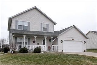 Two story home with front porch. The oak kitchen, formal dining room, living room and half bath are on main floor. Master suite w/ huge bath, two bedrooms and bath on upper floor. Basement is partioned and partially finished. All appliances except refrigerator included. Large deck off dining room, sizable yard and generous garage. Buyer to verify all information. House being sold AS IS.