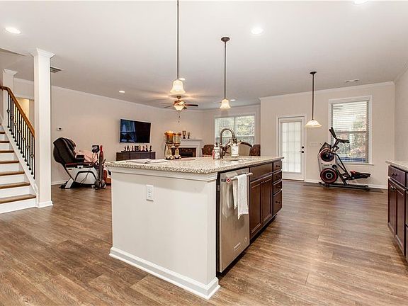 - Kitchen Features: Cabinets Stain, Pantry, View to Family Room, Kitchen Island, Solid Surface Counters