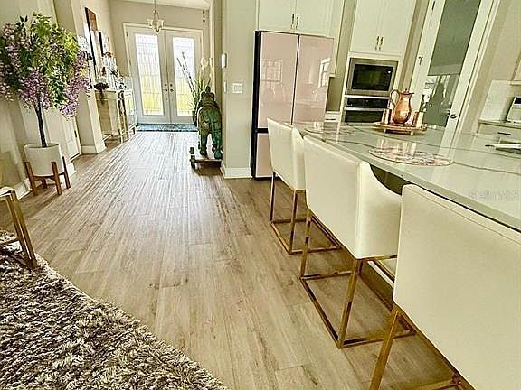 Step into timeless elegance with this 5-bedroom, 4-bath residence offering 3,546 sq ft of thoughtfully crafted living space. Nestled on one of only 35 premium homesites, this estate blends sophistication with comfort at every turn. Inside, expansive interiors invite both relaxation and entertainment. A private den provides the perfect retreat for work or study, while the upstairs bonus room offers endless possibilities for leisure. The heart of the home is a gourmet kitchen designed for both beauty and function. An over-sized island, luxurious options such as GE appliances, Sonoma Duraform Linen cabinets with crown molding and Calcutta Novello Quartz countertop. The owner’s suite is a sanctuary of indulgence, featuring a spa-inspired bathroom and a generous walk-in closet. Secondary bedrooms are equally refined, with a Jack-and-Jill layout that balances privacy and practicality. Outdoors, discover your own private oasis. A screened-in pool and spa create the perfect setting for year-round relaxation, whether hosting friends or enjoying quiet evenings under the Florida sky. With no CDD fees, a low HOA, and a coveted Valrico address, this home delivers luxury, space, and value in one of the area’s most desirable communities. Experience refined living—schedule your private tour today.