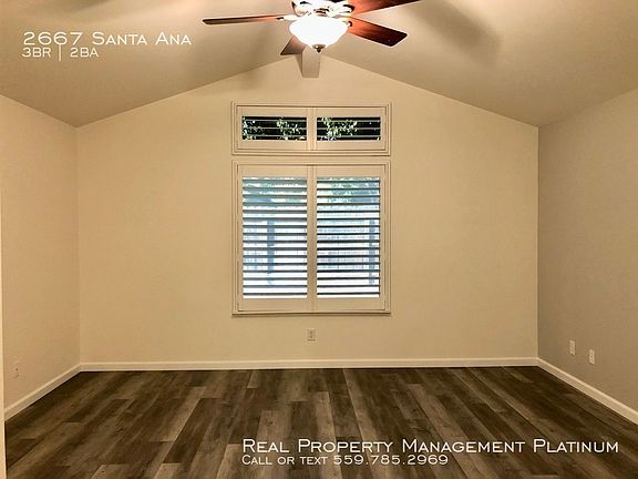 SCHEDULE A SHOWING ONLINE AT: showmojo.com/l/f84482e0e1 New Paint, New vinyl plank flooring. Modern colors! This charming 3 bedroom 2 bathroom home has 1323 sq. ft. and was built in 2003. Great room and dinette area. Kitchen has grey cabinets, white tile counter tops, breakfast bar, electric stove, oven, dishwasher, microwave. Master bedroom has ceiling fan, plantation shutters, vaulted ceilings. Master bathroom has dual sinks, tub/shower and a walk in closet. Two additional bedrooms. Hall bathroom has a single vanity and tub/shower. Vaulted ceilings. Laundry room leads to the attached 2 car garage. Yard care provided. Yard is low maintenance, artificial turf lawn in backyard. Small pet negotiable with additional pet deposit (dog only, NO cats). HOA included. Renter's insurance is required. Quiet neighborhood park with playground (Thorburn Park). Near Freedom Elementary School. Clovis schools. Cross streets are Shaw & Temperance. DRE# 01901101. All information is deemed reliable but not guaranteed and is subject to change. NO CATS, small dog considered with pet deposit, and pet rent. Status: Application Pending 2 Car Garage Community Playground Energy Efficient Home Non Smoking Pets Allowed Renter's Insurance Required Yardcare Included