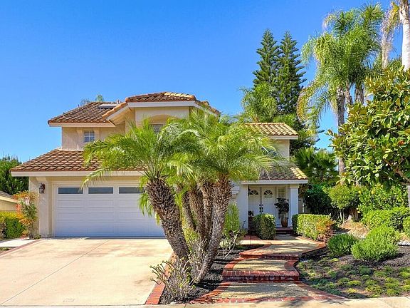 26671 Somerly is an updated classic Californian home sitting on a small street lined with palms. Breathtaking vaulted ceilings, solid wood laminate floors, and high baseboards, greet you as you enter the open floor plan. Travertine floors run through the family room and kitchen, as do crown molding and recessed lighting. The bright remodeled kitchen includes a breakfast bar, granite counters with a marble tile backsplash, stainless steel appliances, farm sink, a tray ceiling with recessed lighting, white cabinets, and soft-closing drawers. There is also a separate built-in breakfast nook with a picture window that opens to the back patio. French doors lead to a large backyard that includes brick pavers and planters with palms and other low-maintenance foliage. Upstairs, the Master bedroom has a vaulted ceiling, high baseboards, and en suite bathroom. The Master bathroom includes a frameless glass walk-in shower with Jerusalem limestone tile, and a double-sink vanity with marble slab counter. Both secondary bedrooms are connected by a Jack n' Jill second bathroom upstairs that includes a double-sink, custom lighting, tile flooring, and a solid-paneled door. 26671 Somerly is walking distance to Bathgate Elementary, a blue ribbon school, and multiple parks and hiking trails, and is a 10-minute drive to Lake Mission Viejo, which includes boating, fishing, clubhouse, and a walk-in beach.