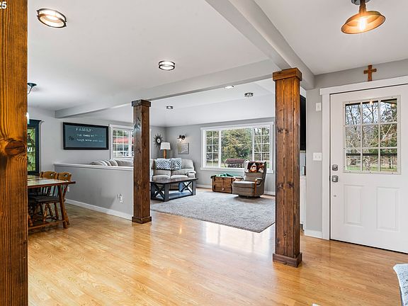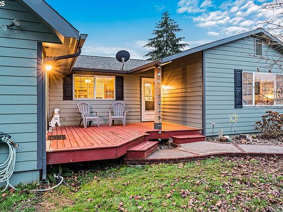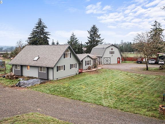 Dual Living in the heart of Wine Country! This beautiful property offers a rare multi-generational opportunity with a fully renovated 1-bedroom, 1.5-bath guest house—featuring a private en-suite, walk-in closet, and its own deck for backyard access. Ideal for extended family or guests, it includes year-round comfort with dedicated mini-splits.The main-level home has four spacious bedrooms, including two with private en-suites. Set on 4.77 usable acres, enjoy generous RV parking, a circular driveway, and multiple outbuildings including a 30x36 16ft high pole barn. The converted attic provides flexible space for storage or a bonus room. Complete with fenced and cross-fenced backyard this property is perfect for hobby farming and entertaining, boasting an expansive deck, above-ground pool, and cozy fire pit.Centrally located, this property is just 12 minutes to Junction City and 20 minutes to Eugene—situated between the University of Oregon and Oregon State University campuses and minutes from Diamond Woods Golf Course—offering the perfect balance of rural tranquility and convenient access to recreation, education, and town.