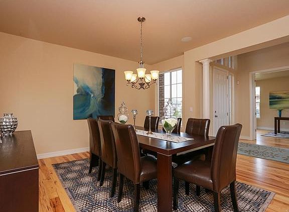 Comfort, style and class describe this stunning family home in Beacon Point. Upon entry of the home you are greeted by an elegant curved staircase, soaring vaulted ceilings and gleaming wide planked hardwood floors on the main level. The handsome study is framed in French doors and offers abundant natural light. You will find plenty of space to entertain in the large formal dining that is highlighted with the butlers pantry and built in wine storage. Enjoy surround sound throughout with iPhone control. The kitchen/family room combo is the heart of this fine home. The gourmet kitchen offers double ovens, stainless steel appliances, slab granite countertops and a large center island with eating space. The spacious deck overlooks the flat yard with ample space for kids and pets to run free. Enjoy backing to a greenbelt and views of the Aurora Reservoir for those beautiful Colorado evenings. Completing the main level is a private guest bedroom with full bath.