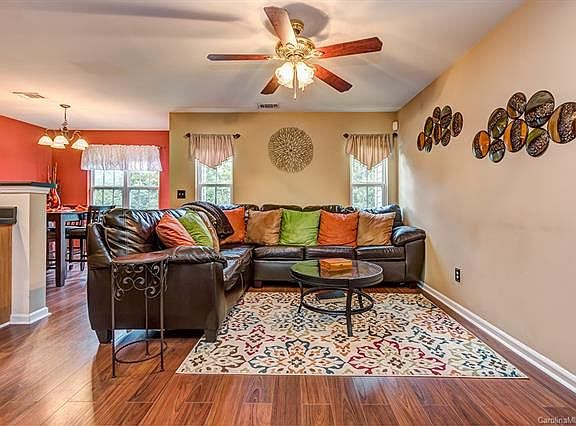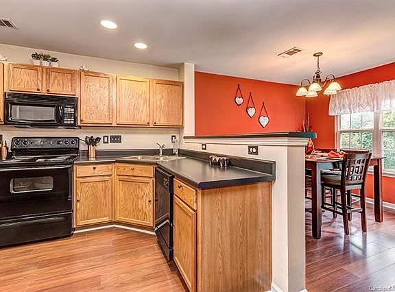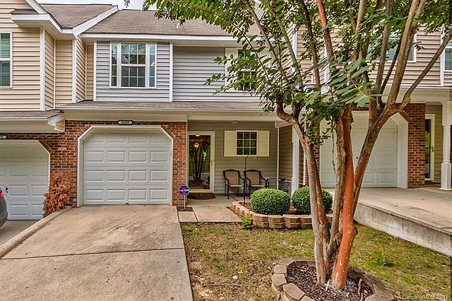 Beautiful, well-maintained 2 story townhome on gorgeous lot with wooded view. This home features double Owner's suites with walk-in closets and vaulted ceilings upstairs. Open floor plan with breakfast nook, large family room and open kitchen. The Kitchen features electric range/oven, dishwasher and disposal, plus pantry with drawer roll outs. Spacious entry with powder room on the main level. Relax on the rear deck overlooking the woods or enjoy the covered front porch facing green space across the street. Rare town home in Oxford Commons with attached Garage. Easy access to shopping & dining, Concord Mills mall, I-85 & I-485, and more! Don't miss it!