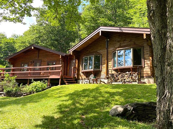 If you've been looking for a rustic Catskill Mountain retreat in a beautiful area this may be the one! This log home was originally built in 1983 and added onto years later. The cozy wood interior invites relaxation and has a homey comfortable feel. The great room features open beamed cathedral ceilings, a stone fire place and plenty of room for family. The combined family room, kitchen and dining area are sure to be the hub of this home. With 2 bedrooms and one bathroom it is ideally suited for those seeking a manageable country get-away.There is a two story detached garage, a utility shed and a gazebo which is a perfect place for outdoor enjoyment. Located the Canada Hollow Homeowners Association, it features a private, tranquil, winding 2 mile road through the association - a wonderful place to take a morning or evening walk. The desirable Canada Hollow Homeowners Association boast over 400 acres with only 14 homes - the integrity of the area almost assured and it is truly a unique and special community. The low annual HOA fees are an added bonus.Minutes to the quaint villages of Margaretville and Andes you are close to restaurants, shopping, antique stores and more. The home is a short drive to Bellayre and Plattekill ski centers, boating on the Pepacton, hiking, golfing, tennis and so much more. About 2.5 hours from NYC.