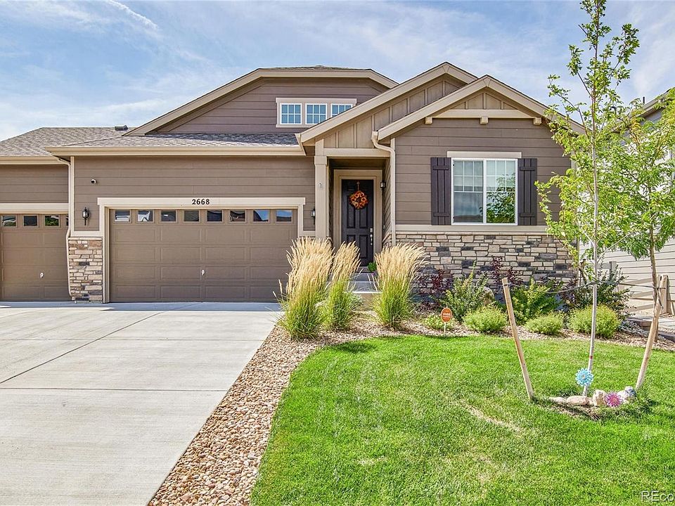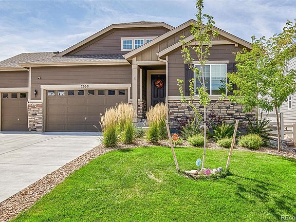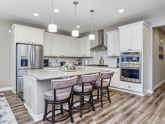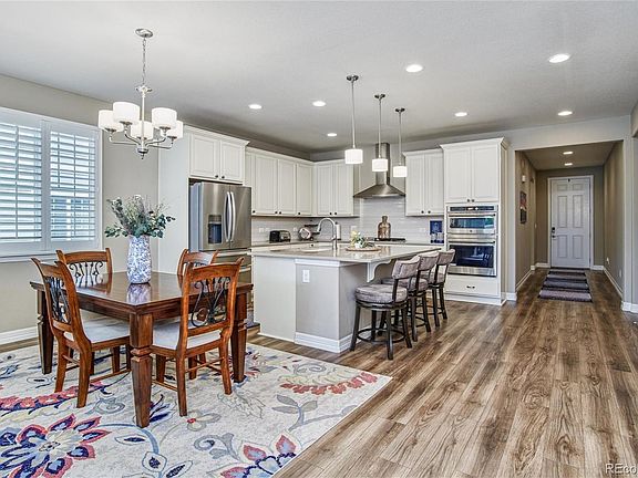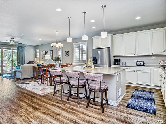 Fabulous 2019 Richmond Ranch with Finished Basement! Featuring 5 Bedrooms and 3 Bathrooms. Gourmet upgraded Kitchen offering quartz countertops, kitchen island with breakfast nook bar sitting, white cabinets, SS appliances, gas cook-top, and undermount sink. Spacious Great Room with gas-log fireplace with ample window light. Large Master Suite with walk-in shower with full clear glass panel, expanded double vanity with quarts counters, and walk-in closet. Three total bedrooms upstairs with two in the basement. Plantation Shutters window coverings in Great Room, Dining and Master Bedroom. Window shades in remaining rooms. Huge covered patio with a wonderful back yard. Crystal Valley Community offers Pinnacle Park and Recreation Center. Miles of community trails and 600 acres of Open Space. HOA includes Clubhouse, Fitness Center and Pool.