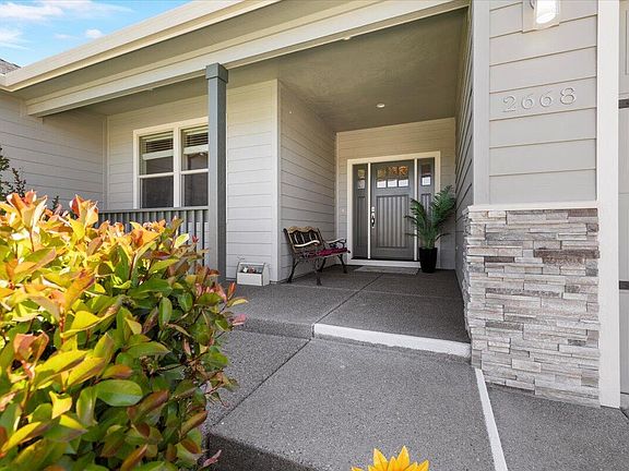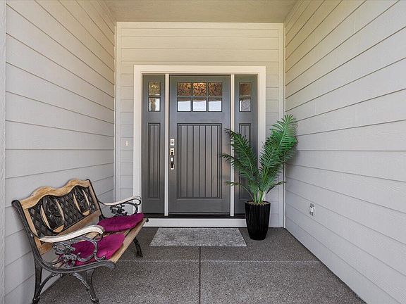 Nestled in East Medford's coveted Cedar Landing Community, this like new 1,885 sqft. custom-built home is waiting for you. The open floor plan basks in natural light, featuring a gorgeous kitchen with granite counters, plenty of soft close cabinets, large island, gas stove, and walk-in pantry. The primary suite boasts a boxed vault ceiling, ceiling fan, en-suite with dual vanity, walk-in tile shower, and spacious walk-in closet. Two additional bedrooms, one with vaulted ceilings ideal for an office & a guest bath with a large tub, ideal for soaking. A covered patio looks out into a lovely backyard, perfect for relaxing and entertaining. Automatic sprinklers front and back have established your beautifully landscaped yards. Brand new shed w/ loft space provides plenty of additional storage. Furniture available for purchase outside of escrow. If you are looking for brand new construction, please give this a look, you will be pleasantly surprised. Don't miss this exceptional opportunity!