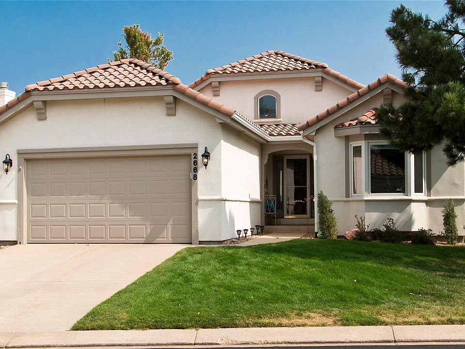 Must see reconstructed ranch style patio home offers a modern open concept throughout the main floor with 4 bedrooms, 3 full bathrooms, double stall garage in the highly sought-after Cypress Ridge gated community. This home offers spacious rooms with tons of natural light, vaulted ceilings, new lighting, fixtures, appliances less than 2 years old, and lifetime Anderson windows. Sensational living room with gas fireplace, plus French doors that lead to the pergola covered private patio, great for entertaining. Main level master bedroom with bathroom and walk-in closet, the second main level bedroom is currently used as an office, plus a second full bathroom. Natural hickory floors on the main level. Luxury vinyl floor on the lower level. Additional lower level family room, two bedrooms, a full bath, and media room with game area, big TV and surround sound complete this wonderful home. All TV's with Sonos soundbars included. Built-in storage cabinets in the garage. HOA insurance covers inside and out of units. Award-winning D-20 schools. Easy access to I-25. Close to dining, shopping, entertainment, and parks. All that is missing is you!