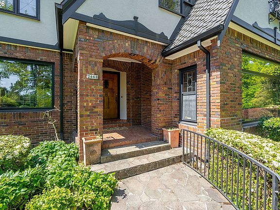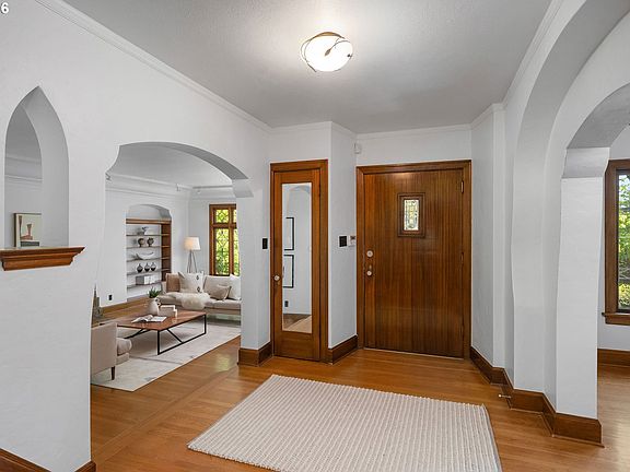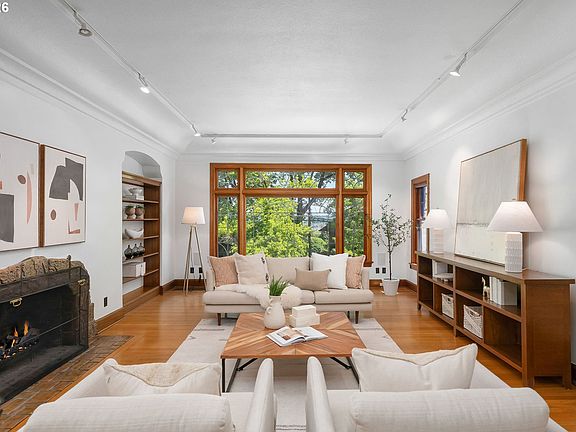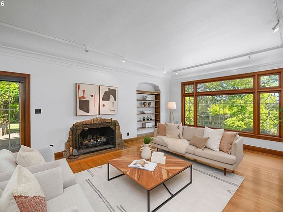 Situated on a spacious 0.30-acre lot, this distinguished residence is surrounded by lush lawns, perennial gardens, and mature trees. Sunlight fills the interiors, highlighting elegant leaded glass windows, hardwood floors, and finely craftedmoldings and archways throughout. The gourmet kitchen opens seamlessly to generous living and dining spaces, creating an ideal layout for both everyday living and effortless entertaining. The second level features three spacious bedrooms and two full bathrooms, while the top floor offers a flexible retreat—perfect as an ensuite bedroom, studio, or loft. The fully finished lower level includes a separate living area with a full kitchen, providing an excellent option for an au pair, extended guests, or multigenerational living. Additional highlights include abundant storage, a two-car garage, and a prime location just three blocks from NW 23rd, the streetcar, scenic walking trails, and Hillside Park CommunityCenter. [Home Energy Score = 1. HES Report at https://rpt.greenbuildingregistry.com/hes/OR10238175]
