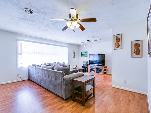 If you are wanting a nice clean and large home in a great location, you have found it. There are two separate large living areas -- one in front of the home and one in the back with many windows. The floors are wood laminate throughout except in the back living room. Included in this home is an enclosed spacious porch that leads out to a very shaded and green back yard, where you will also find a great storage building for all your yard equipment. The garage also has an extra enclosed storage area. The kitchen is equipped with a wall of cabinets for food and small appliance storage, and the dining room is big enough for large family dinners. In this price range, you won't be disappointed in the value!