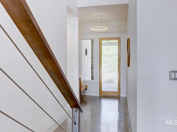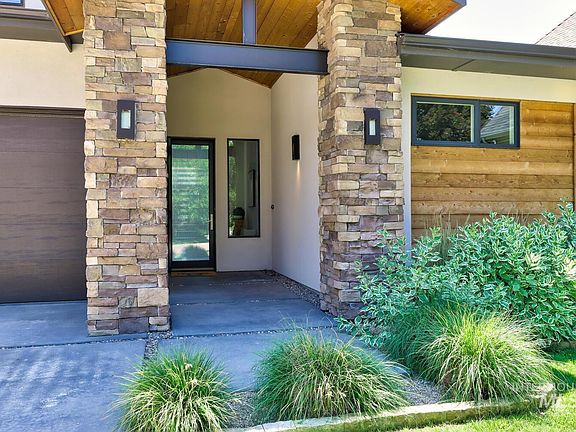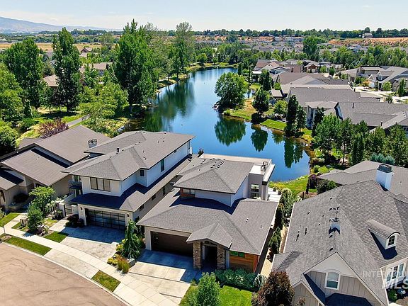 Welcome to the gated community of Lakemoor. Located on a quiet street with backyard lake views, this custom-built two-story home offers 3-bedrooms, 2.5-bathrooms, a 3-car garage with epoxy flooring, and unique 2,067 square feet of living space. The open concept floorplan is perfect for entertaining both inside and out. The exquisite design of clean lines and floor-to-ceiling wall of windows brings the outdoors in with an abundance of natural light! The kitchen boasts Bosch appliances, a free-standing island with bar seating, and a dining area. High-end details throughout, passive solar radiant heated concrete flooring, office space, suspended loft bed, mobile app-controlled lighting, blinds, music and thermostat. Efficient 'green' construction. Enjoy the outdoor space either lounging on the upper concrete patio or around the conversational-pitted fireplace space. Enjoy community pools, pickle ball/tennis/sports courts, and greenbelts. Conveniently located to shops, dining, movie theatre, and downtown Eagle.