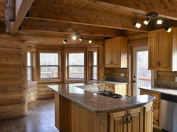 1.7 Acre Log and Stone Cabin nestled in a grove of Aspen Trees, on a heavily wooded and private. Recently remodeled with rustic finishes. Very functional floor plan. Open concept kitchen/dining/family. Main level master suite with bathroom. Open loft area. Grand wood buring fireplace that will heat the house. Large deck with hot tub. Located on a maintained dirt road with easy year round access. Year round pond attracts deer and moose on a daily basis.