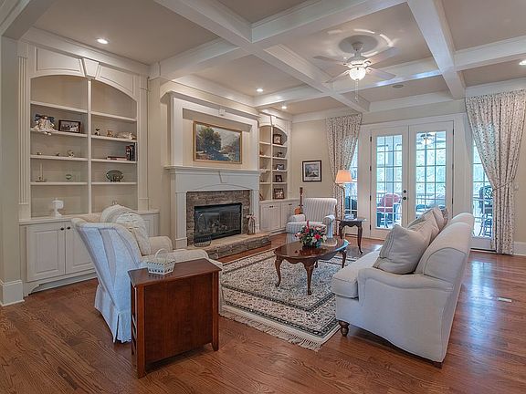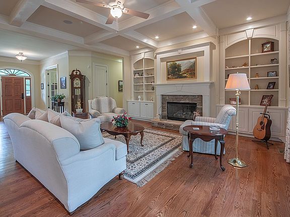 - Fireplace, Security System, 9 Ft+ Ceilings, Window Blinds, Built-ins, Ceiling Fan, Window Treatments, Trey Ceilings, Wet Bar