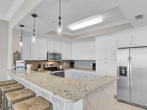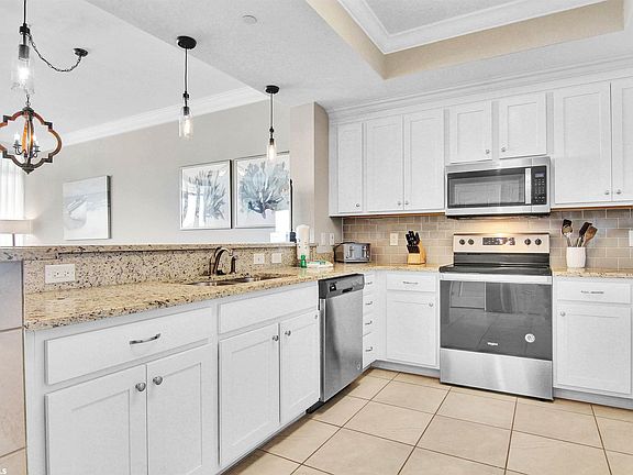 This Condo is 3-bedroom 3 bath in pristine condition, has been professionally decorated with numerous interior upgrades. Interior upgrades include Upgraded Kitchen Cabinet, Granite Throughout, Large Tile Throughout, Tiled Bar Front, Tile Backsplash, Stainless Steel Appliances, Tiled Shower and Tiled Tub Surround in Mater Bathroom, Private Tiled Balcony with Amazing Views of the Alabama Coastline. This Condos also features Smooth 10 Ft Ceilings with Large Crown Molding in Living Room and all Bedrooms. Climate Controlled Owners Closet just across the hall also on the 17th Floor. This Condo is a must see.